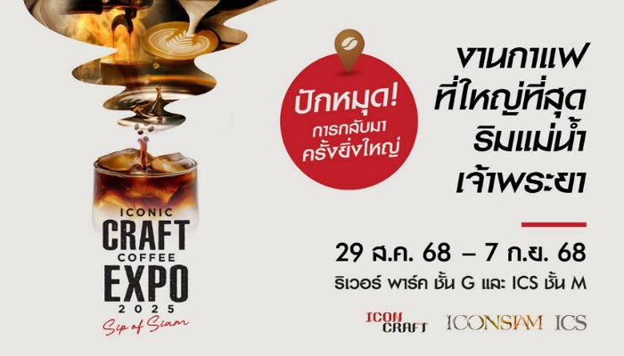 ไอคอนสยาม แลนด์มาร์กระดับโลกริมแม่น้ำเจ้าพระยา เตรียมสร้างปรากฏการณ์ให้กับวงการกาแฟไทยอีกครั้งในงาน “ICONIC CRAFT COFFEE EXPO 2025” งานกาแฟสุดยิ่งใหญ่ครั้งแรกริมแม่น้ำเจ้าพระยา ระหว่างวันที่ 29 สิงหาคม – 7 กันยายน 2568 ณ ริเวอร์ พาร์ค ไอคอนสยาม ต่อเนื่องไปถึง Event Space ชั้น M ไอซีเอส ภายใต้คอนเซปต์“Sip of SIAM – สัมผัสประสบการณ์แห่งแรงบันดาลใจกาแฟไทยและโลก” รวมความเป็นที่สุดเกี่ยวกับกาแฟมาไว้ในงานเดียวกว่า 100 ร้านค้า กว่า 1,000 เมนูทั้งร้านกาแฟดังจากทั่วไทย เมล็ดกาแฟหายากจากทั่วโลก เรื่องราวจากเหล่าบาริสต้าแถวหน้าในแวดวงกาแฟไทยและโลก เมนูกาแฟสุดเอ็กซ์คลูซีฟ พร้อมนำเสนอวัฒนธรรมกาแฟครบทุกมิติ ปักหมุดให้ไอคอนสยามเป็น Global Coffee Destination หมุดหมายเพียงหนึ่งเดียวที่จะสร้างประสบการณ์สุดพิเศษให้กับคนรักกาแฟ สร้างเครือข่ายในการต่อยอดธุรกิจสำหรับผู้ประกอบการ และยกระดับอุตสาหกรรมกาแฟไทยทั้งระบบให้ก้าวไกลสู่สากล