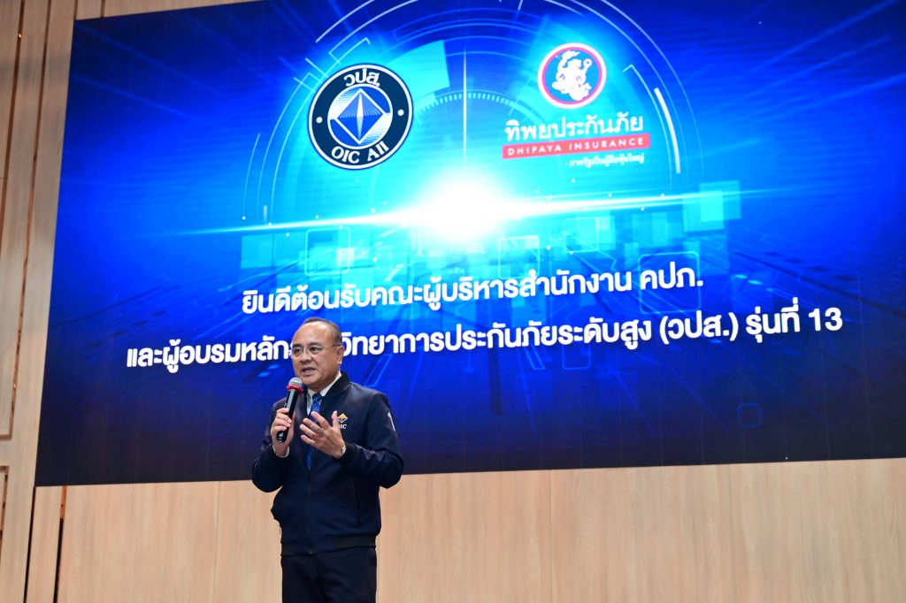 ดร.สมพร สืบถวิลกุล ประธานเจ้าหน้าที่บริหาร บริษัท ทิพย กรุ๊ป โฮลดิ้งส์ จำกัด (มหาชน) และกรรมการผู้จัดการใหญ่ บริษัท ทิพยประกันภัย จำกัด (มหาชน) พร้อมด้วยผู้บริหารทิพยประกันภัย ให้การต้อนรับ นายชูฉัตร ประมูลผล เลขาธิการสำนักงานคณะกรรมการกำกับและส่งเสริมการประกอบธุรกิจประกันภัย (คปภ.) พร้อมคณะผู้บริหารผู้ทรงคุณวุฒิอบรมหลักสูตรวิทยาการประกันภัยระดับสูง (วปส.) รุ่นที่ 13 ภายในงานมีการบรรยายพิเศษภายใต้แนวคิด “Next Generation Insurance Leader” ถ่ายทอดแนวคิดการสร้างผู้นำรุ่นใหม่ที่มีวิสัยทัศน์ ทักษะ และความพร้อมในการขับเคลื่อนอุตสาหกรรมประกันภัยให้เติบโตอย่างยั่งยืน ซึ่งสอดคล้องกับพันธกิจของทิพยประกันภัยในการพัฒนาและยกระดับศักยภาพผู้นำในยุคดิจิทัลอย่างต่อเนื่อง