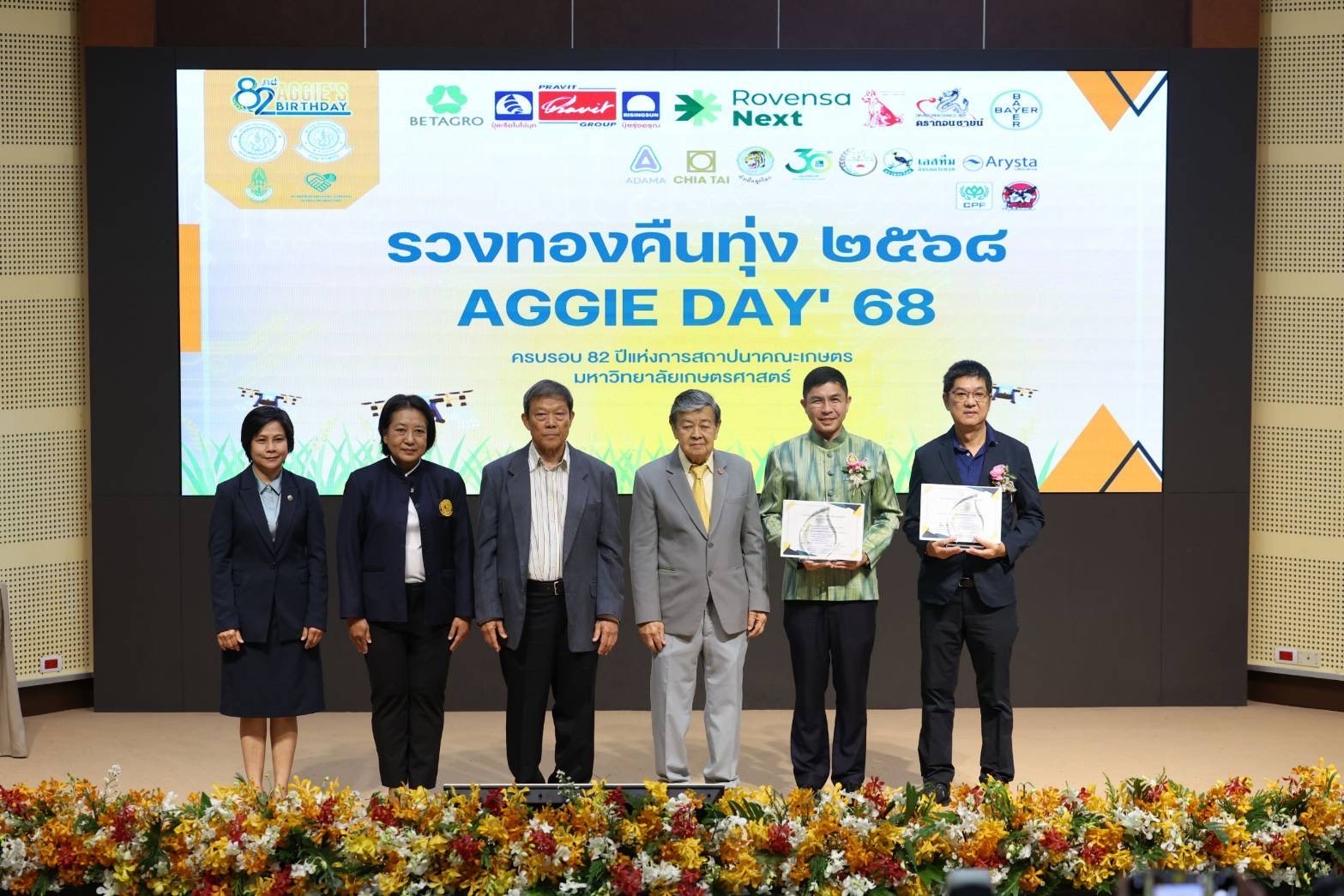 นายฉัตรชัย ศิริไล ผู้จัดการ ธนาคารเพื่อการเกษตรและสหกรณ์การเกษตร (ธ.ก.ส.) รับโล่รางวัล เชิดชูเกียรติ “สถาบันที่มีความดีเด่นทางการเกษตร ประจำปี พ.ศ. 2567” และนางสาวพรหมกร พรหมขัติแก้ว ผู้ช่วยผู้จัดการ ธ.ก.ส ในฐานะนิสิตเก่าคณะเกษตร มก.รุ่นที่ 46 รับรางวัลนิสิตเก่าดีเด่นคณะเกษตร ประเภทนักบริหารภาครัฐ/ภาครัฐวิสาหกิจ ประจำปี พ.ศ. 2567 จากสมาคมนิสิตเก่าคณะเกษตร มหาวิทยาลัยเกษตรศาสตร์ ในงานรวงทองคืนทุ่ง 2568 – Aggie Day’ 68 ครบรอบ 82 ปีแห่งการสถาปนาคณะเกษตร มหาวิทยาลัยเกษตรศาตร์ เพื่อยกย่อง เชิดชูเกียรติองค์กรและบุคคคที่มีผลงานดีเด่นและมีบทบาทสำคัญในการพัฒนาและส่งเสริมภาคการเกษตร ทั้งด้านงานวิชาการ การวิจัย การบริหารจัดการ และการให้บริการแก่เกษตรกร เพื่อประโยชน์แก่การพัฒนาเกษตรกรรมของประเทศ ซึ่งสะท้อนบทบาทของ ธ.ก.ส. ในการขับเคลื่อนภาคเกษตรของไทยตามวิสัยทัศน์ในการเป็น “ธนาคารพัฒนาชนบทที่ยั่งยืน”