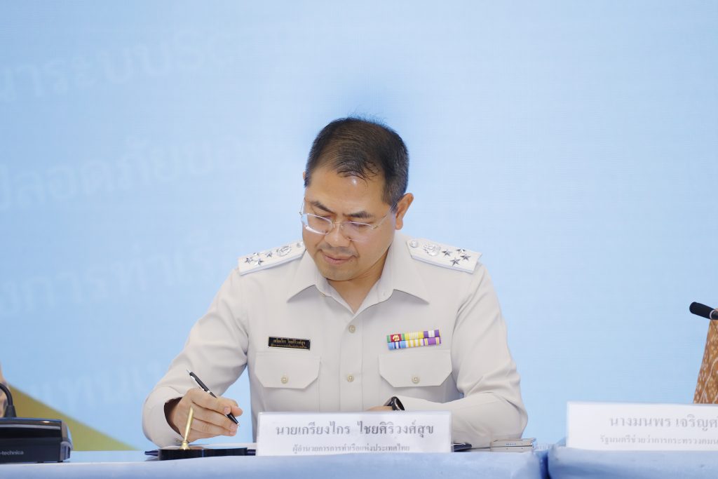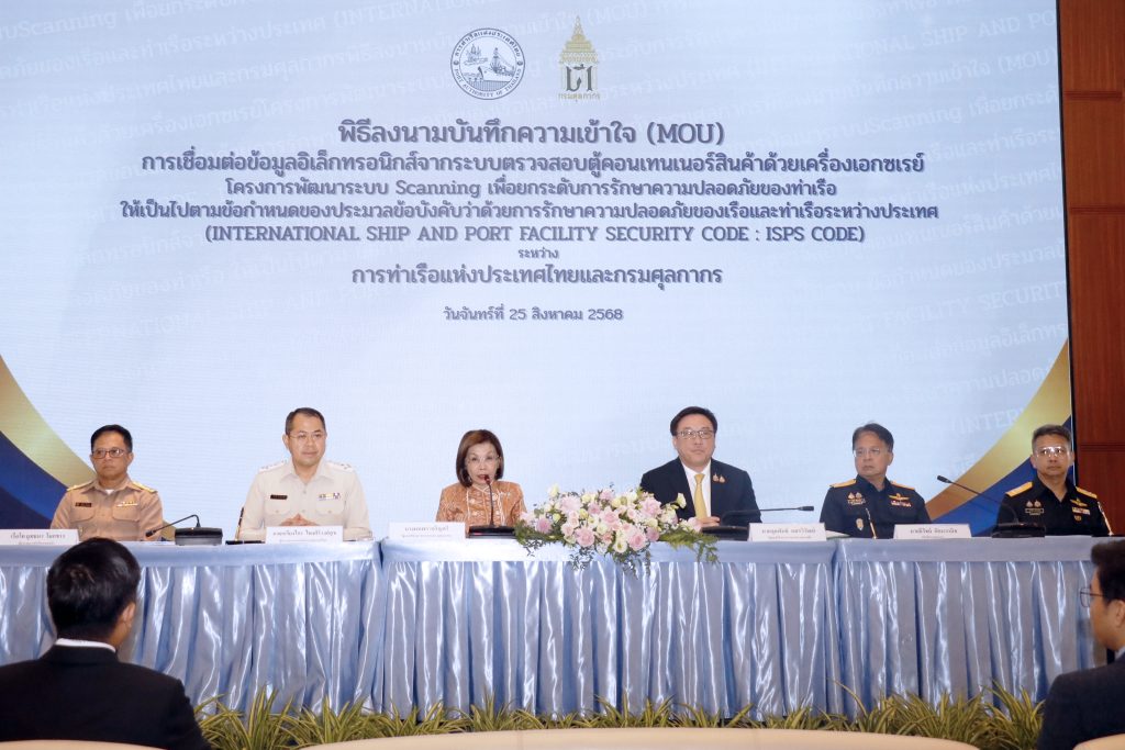 นายเกรียงไกร ไชยศิริวงศ์สุข ผู้อำนวยการ กทท. กล่าวเพิ่มเติมว่า การลงนาม MOU ครั้งนี้ ถือเป็นก้าวสำคัญในการยกระดับความปลอดภัยทางทะเลและระบบท่าเรือไทยให้ทัดเทียมมาตรฐานสากล ภายใต้ข้อกำหนดของ ISPS Code (International Ship and Port Facility Security Code) สร้างความเชื่อมั่นให้กับผู้ประกอบการ นักลงทุน และพันธมิตรทางการค้า ขณะเดียวกันยังสะท้อนวิสัยทัศน์เชิงกลยุทธ์ของ กทท. และกรมศุลกากร ที่นำเทคโนโลยีและความร่วมมือระหว่างหน่วยงานมาเป็นกลไกหลักในการขับเคลื่อนความปลอดภัยทางทะเลและยกระดับระบบโลจิสติกส์ของประเทศ เป็นการบูรณาการศักยภาพของ กทท. และกรมศุลกากร โดย กทท. จะพัฒนาระบบเชื่อมต่อข้อมูลอิเล็กทรอนิกส์ที่มีความปลอดภัยสูง เพื่อนำไปใช้ในการเชื่อมโยงข้อมูลสินค้าอย่างมีประสิทธิภาพ โปร่งใส ลดขั้นตอนที่ซ้ำซ้อน และมีความแม่นยำมากยิ่งขึ้น โดยจะเริ่มดำเนินการที่ท่าเรือแหลมฉบัง ซึ่งเป็นท่าเรือหลักด้านการขนส่งสินค้าระหว่างประเทศเป็นแห่งแรก และจะขยายสู่ท่าเรือกรุงเทพ และท่าเรืออื่น ๆ ของ กทท. ในอนาคต