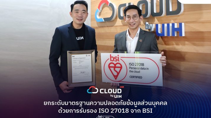 ส่วนการรับรอง ISO/IEC 27018 จาก BSI ครั้งนี้ เป็นอีกหนึ่งหลักฐานว่า UIH มุ่งมั่นยกระดับมาตรฐานบริการดิจิทัลในทุกมิติ ครอบคลุม Multi-Cloud, Cybersecurity, Connectivity และ Application Services โดยมี Cloud HM เป็น ผลิตภัณฑ์หลักที่วางตำแหน่งชัดเจนในฐานะ “Your Multi-Cloud Expert” พร้อมส่งมอบบริการครบวงจร ตั้งแต่การให้คำปรึกษา ออกแบบ ติดตั้งระบบ ไปจนถึงการสำรองข้อมูลและ Disaster Recovery ด้วยโครงสร้างพื้นฐานที่มั่นคงและเชื่อถือได้ UIH และ Cloud HM ยังคงเดินหน้าสร้างความเชื่อมั่นให้กับองค์กรทุกระดับ ตั้งแต่ธุรกิจ SME จนถึงองค์กรระดับ Enterprise ว่า Cloud HM จะเป็น Multi-Cloud Expert ที่อยู่เคียงข้างธุรกิจไทยในการก้าวสู่อนาคตดิจิทัลอย่างมั่นใจ