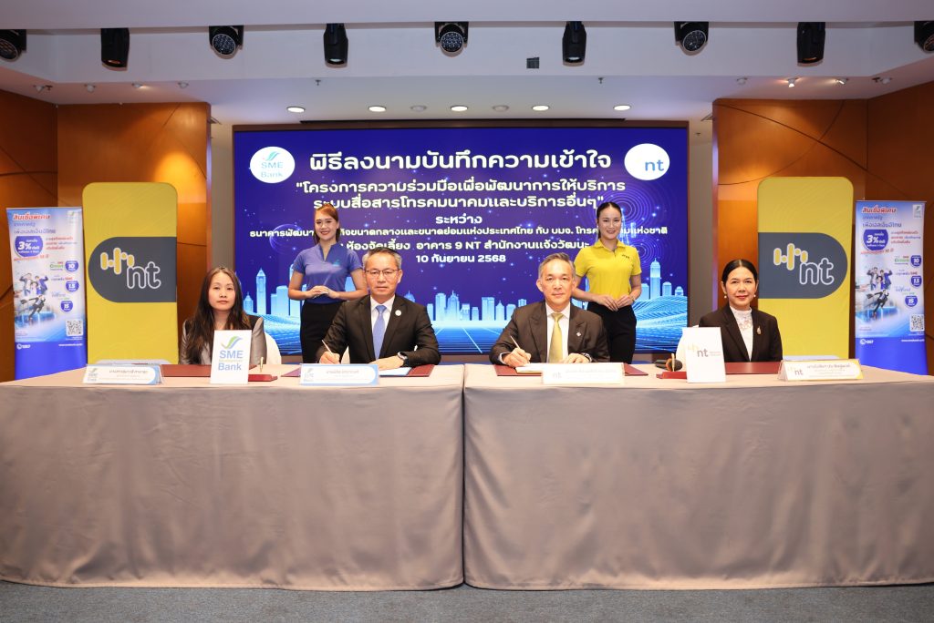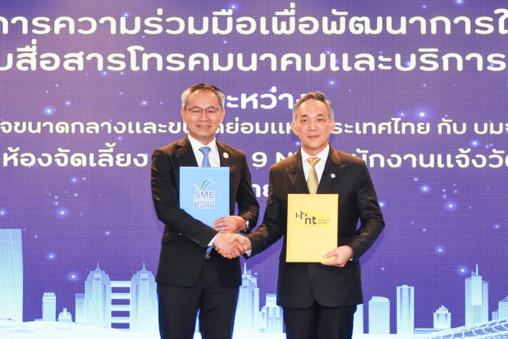 2 หน่วยงานรัฐวิสาหกิจ “SME D Bank” กับ “NT” ลงนามความร่วมมือยกระดับพัฒนาระบบการสื่อสารโทรคมนาคม ช่วยเพิ่มประสิทธิภาพมอบบริการได้อย่างครบวงจร สะดวก และรวดเร็ว อีกทั้ง สนับสนุนให้ผู้ประกอบการเอสเอ็มอีเพิ่มศักยภาพด้านเทคโนโลยีสื่อสาร ผ่านการเติมทักษะ และเติมทุนสินเชื่ออัตราดอกเบี้ยพิเศษเพียง 3%ต่อปี คงที่ 3 ปีแรก พร้อมก้าวทันการดำเนินธุรกิจในโลกยุคปัจจุบันและอนาคต