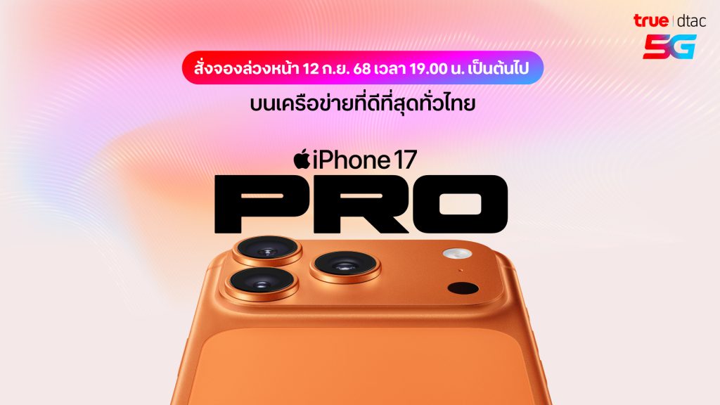 ทรู ดีแทค 5G เตรียมวางจำหน่าย iPhone 17, iPhone Air, iPhone 17 Pro, iPhone 17 Pro Max โดยลูกค้าสามารถสั่งจอง iPhone รุ่นใหม่ทั้งหมดได้ตั้งแต่วันศุกร์ที่ 12 กันยายน 2568เวลา 19.00 น. และจะพร้อมจำหน่ายในวันศุกร์ที่ 19 กันยายน 2568 โปรดตรวจสอบรายละเอียดวันวางจำหน่ายของ Apple Watch Series 11, Apple Watch SE 3, Apple Watch Ultra 3 และ AirPods Pro 3 อีกครั้ง ติดตามรายละเอียดราคา และการวางจำหน่ายเพิ่มเติมได้ที่