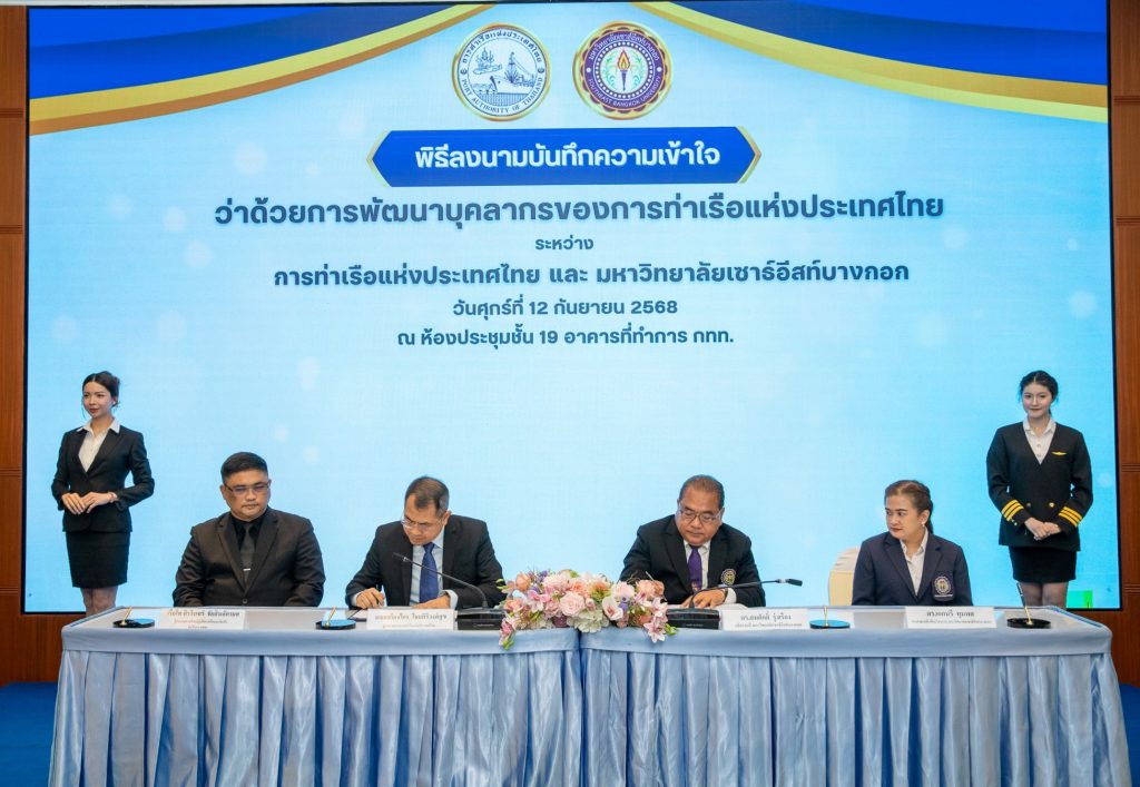 ร่วมลงนาม : การท่าเรือแห่งประเทศไทย (กทท.) โดยสถาบันด้านการขนส่งทางน้ำและโลจิสติกส์ (MLI) จัดพิธีลงนามบันทึกความเข้าใจ (MOU) ว่าด้วยการพัฒนาบุคลากรของ กทท. ระหว่าง กทท. และมหาวิทยาลัยเซาธ์อีสท์บางกอก เพื่อร่วมแลกเปลี่ยนองค์ความรู้ในหลักสูตรด้านโลจิสติกส์ พัฒนารูปแบบการเรียนการสอนร่วมกัน รวมทั้งสร้างเครือข่ายการทำงานวิจัยและพัฒนาที่จะยกระดับศักยภาพผู้เรียน นำไปสู่การพัฒนาการสร้างนวัตกรรมที่เป็นรูปธรรม และสามารถสร้างมูลค่าให้แก่สังคมและประเทศชาติ โดยมี นายเกรียงไกร ไชยศิริวงศ์สุข ผู้อำนวยการ กทท. และ ดร.สมศักดิ์ รุ่งเรือง อธิการบดี มหาวิทยาลัยซาธ์อีสท์บางกอก เป็นผู้ลงนาม ณ ห้องประชุมชั้น 19 อาคารที่ทำการ กทท.