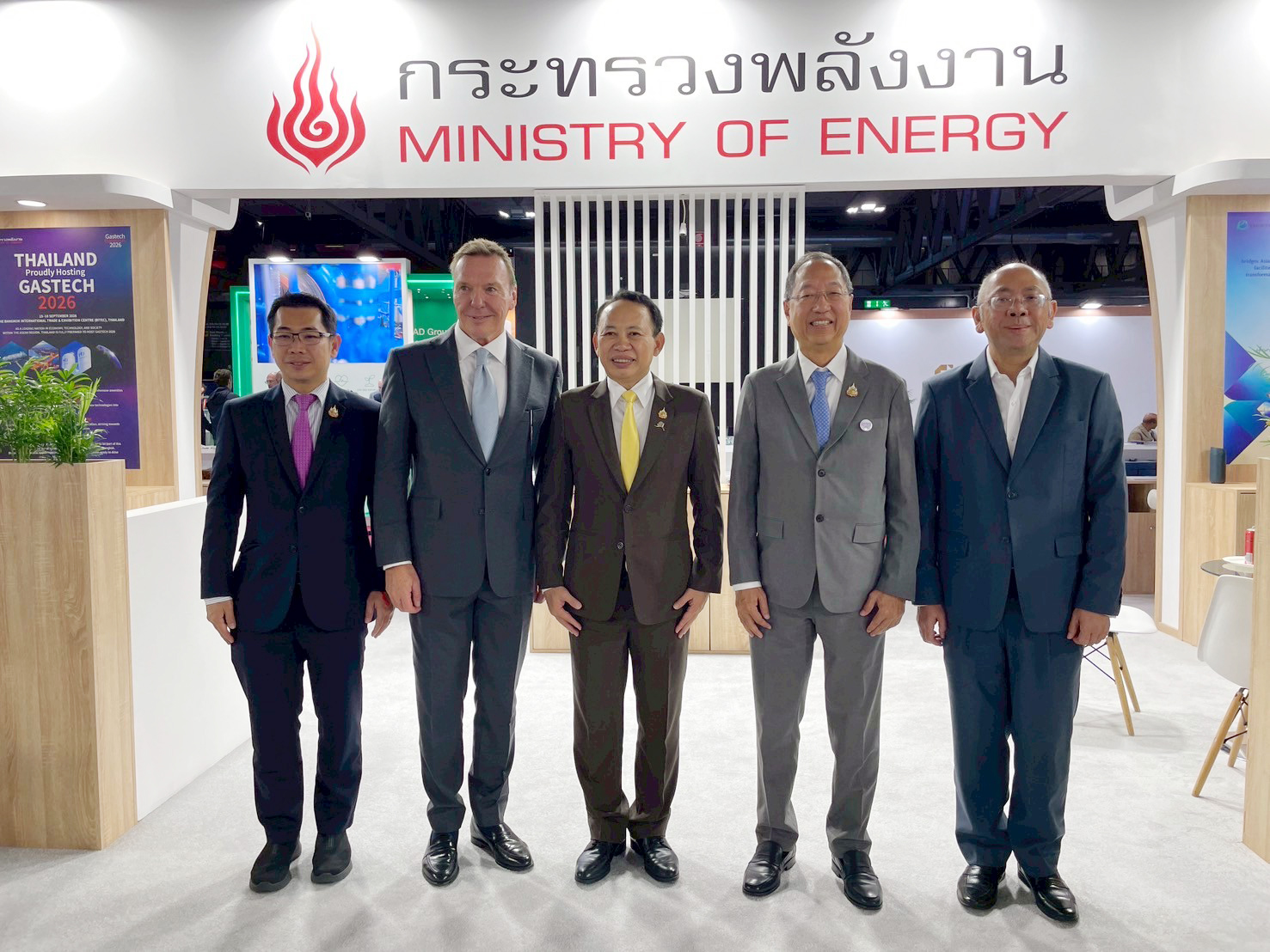 ร่วมงาน Gastech2025 : ทีมไทยแลนด์ โดยสำนักงานส่งเสริมการจัดประชุมและนิทรรศการ (องค์การมหาชน) หรือ ทีเส็บ ร่วมกับ กระทรวงพลังงาน และพันธมิตรในอุตสาหกรรมพลังงานของไทย เข้าร่วมงาน Gastech 2025 ณ เมืองมิลาน สาธารณรัฐอิตาลี เพื่อประกาศความพร้อมของประเทศไทยในการเป็นเจ้าภาพงานแสดงสินค้าด้านอุตสาหกรรมพลังงานระดับโลก Gastech 2026 ซึ่งจะจัดขึ้นระหว่างวันที่ 15-18 กันยายน 2569 ณ ศูนย์นิทรรศการและการประชุมนานาชาติไบเทค โดยมี นายคริสโตเฟอร์ ฮัดสัน ประธานบริษัท ดีเอ็มจี อีเว้นท์ (ที่ 2 จากซ้าย) ในฐานะผู้จัดงานให้การต้อนรับ ดร.พสุ โลหารชุน ประธานกรรมการส่งเสริมการจัดประชุมและนิทรรศการ ทีเส็บ (ที่ 4 จากซ้าย) และ ดร. ประเสริฐ สินสุขประเสริฐ ปลัดกระทรวงพลังงาน (ที่ 3 จากซ้าย) ในการนำทีมไทยแลนด์เข้าร่วมงานอย่างเป็นทางการ