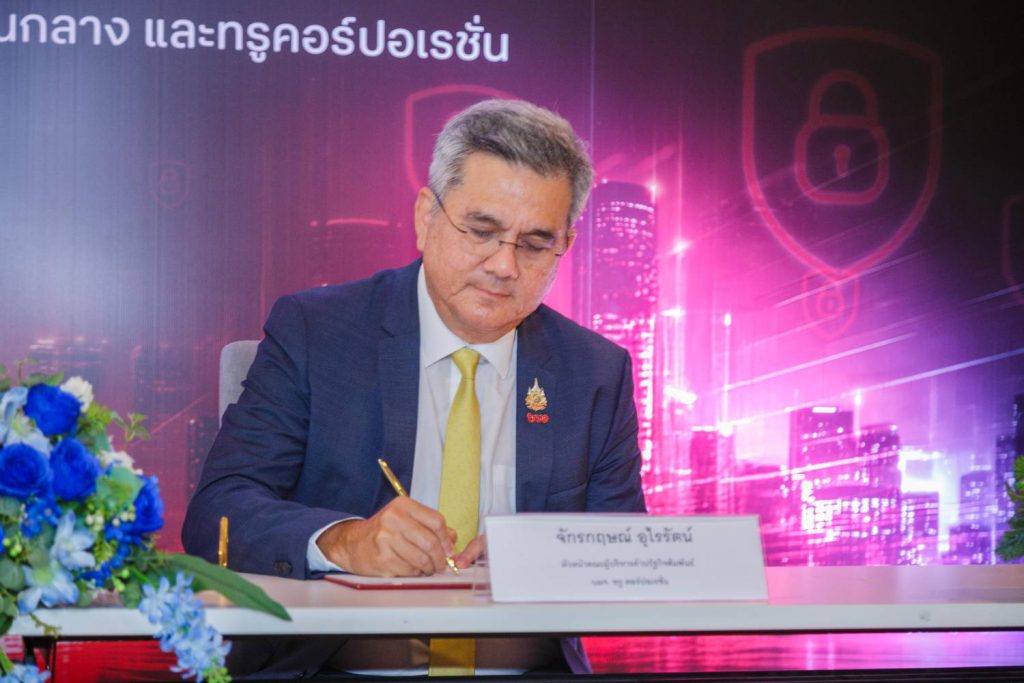 นายจักรกฤษณ์ อุไรรัตน์ หัวหน้าคณะผู้บริหารด้านรัฐกิจสัมพันธ์ บมจ. ทรู คอร์ปอเรชั่น กล่าวว่า “ทรู คอร์ปอเรชั่น ขอขอบคุณกองบัญชาการตำรวจสอบสวนกลางเป็นอย่างยิ่ง ที่ได้ทำงานอย่างใกล้ชิดกับภาคเอกชน ร่วมมือกับทรูในการเสริมสร้างความมั่นคงปลอดภัยให้แก่ลูกค้าและประชาชนทั่วประเทศ โดยเฉพาะในยุคดิจิทัลที่ภัยคุกคามทางไซเบอร์มีความซับซ้อนและขยายตัวเพิ่มขึ้นอย่างรวดเร็ว ที่ผ่านมา ทรูได้สนับสนุนภารกิจสำคัญของกองบัญชาการตำรวจสอบสวนกลางมาอย่างต่อเนื่อง ไม่ว่าจะเป็นการสนับสนุนยุทธการ ด้านการบังคับใช้กฎหมายและการดำเนินการต่อเครือข่ายอาชญากรรมทางเทคโนโลยี ตลอดจนการร่วมสนับสนุนสื่อและกิจกรรมเพื่อสร้างความตระหนักด้านความปลอดภัยไซเบอร์แก่ประชาชน และในวันนี้ ความร่วมมือได้ก้าวสู่ระดับที่ชัดเจนและครอบคลุมมากยิ่งขึ้น ผ่านการลงนามบันทึกความเข้าใจร่วมกันใน 3 ด้านสำคัญ คือ การบูรณาการและแลกเปลี่ยนข้อมูลเพื่อการสืบสวนและป้องกันอาชญากรรม การสร้างความรู้ความเข้าใจแก่ประชาชนให้รู้เท่าทันกลโกงออนไลน์ และการศึกษาแบ่งปันข้อมูลเชิงลึกเพื่อพัฒนามาตรการรับมือ พร้อมกลไกช่วยเหลือผู้ตกเป็นเหยื่อ ความร่วมมือครั้งนี้สะท้อนถึงเจตนารมณ์ร่วมในการใช้ศักยภาพเทคโนโลยีและเครือข่าย สร้างสังคมดิจิทัลที่ปลอดภัยให้กับทุกคน