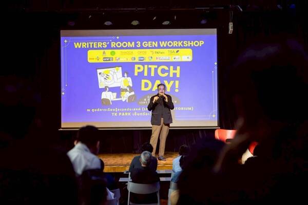หลังจากเปิดโปรเจ็กต์สุดสร้างสรรค์ เพื่อพัฒนานักเขียนบทไทย 3 เจเนอเรชั่น ให้สามารถเดินหน้าผลิตผลงานได้อย่างน่าสนใจและส่งเสริมการพัฒนาคอนเทนต์ไทยให้แข่งขันได้ในตลาดโลกเมื่อเดือนมิถุนายนที่ผ่านมา โครงการ “Writers’ Room 3 Gen Workshop” ซึ่งสมาคมนักเขียนบทละครโทรทัศน์ (TSA) ร่วมกับพันธมิตรทั้งภาครัฐและเอกชน อาทิ กรมส่งเสริมวัฒนธรรม กระทรวงวัฒนธรรม, THACCA สำนักงานส่งเสริมวัฒนธรรมสร้างสรรค์, OFOS – One Family One Soft Power, อุทยานการเรียนรู้ TK Park, True CJ Creation, ช่อง One31, ช่อง 3, ช่อง 7HD, GMMTV, MONOMAX ฯลฯ จัดขึ้น ได้เดินทางมาถึงโค้งสุดท้ายแล้ว กับกิจกรรม “Pitch Day” เปิดเวทีแห่งโอกาสให้นักเขียนบทรุ่นใหม่ที่ผ่านเข้ารอบสุดท้าย ได้นำเสนอไอเดียต่อสถานีโทรทัศน์ สตูดิโอผู้ผลิตชั้นนำ และแพลตฟอร์มสตรีมมิ่งต่างๆ เมื่อวันที่ 3 กันยายน 2568 ณ ศูนย์การเรียนรู้อเนกประสงค์ (Learning Auditorium) TK Park ชั้น 8 เซ็นทรัลเวิลด์