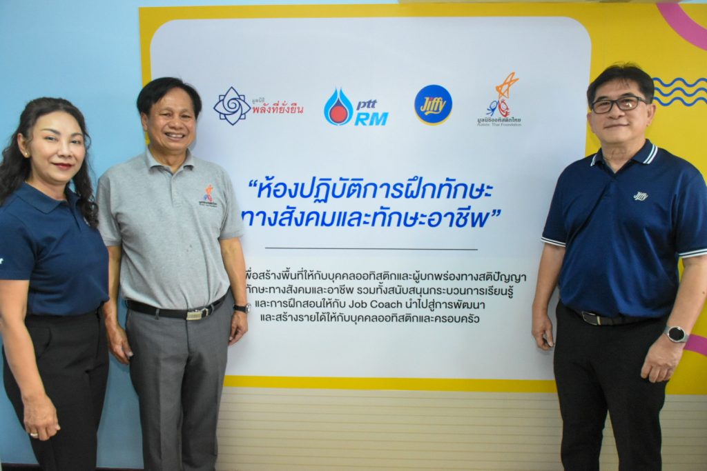 บริษัท ปตท. บริหารธุรกิจค้าปลีก จำกัด ร่วมกับมูลนิธิพลังที่ยั่งยืน และ มูลนิธิออทิสติกไทย ร่วมมอบร้านจิฟฟี่จำลองเพื่อมอบโอกาสการฝึกอาชีพ ในโครงการเปิดห้องปฏิบัติการฝึกทักษะทางสังคมและทักษะอาชีพ ณ มูลนิธิออทิสติกไทย กรุงเทพฯ โดยมี คุณนิวัตน์ จิตจำนงค์เมต รองกรรมการผู้จัดการ กลยุทธ์ธุรกิจค้าปลีก บริษัท ปตท. บริหารธุรกิจค้าปลีก จำกัด, คุณชูศักดิ์ จันทยานนท์ ประธานมูลนิธิออทิสติกไทย และคุณวราปณัช เกิดฤทธิ์ ผู้อำนวยการ มูลนิธิพลังที่ยั่งยืน เปิดเป็นทางการ โดยห้องปฏิบัติการแห่งนี้ ใช้สำหรับเป็นพื้นที่เรียนรู้และฝึกทักษะ ภายใต้โครงการพัฒนาทักษะทางสังคมและอาชีพแก่เยาวชนด้อยโอกาส (บุคคลออทิสติกและผู้บกพร่องทางสติปัญญา) ในการบริหารร้านค้าปลีก การจัดเรียงสินค้า รวมถึงสร้างความรู้พื้นฐานในการขายสินค้าและคิดคำนวณการใช้เงินเบื้องต้น เพื่อเตรียมความพร้อมในการประกอบอาชีพแก่บุคคลออทิสติก โดยปัจจุบันร้านสะดวกซื้อจิฟฟี่ร่วมมอบโอกาสน้องๆ บุคคลออทิสติกด้วยการจ้างงานเป็นพนักงานร้านจิฟฟี่ในส่วนการเติมสินค้าจำนวน 7 อัตราโดยได้รับสวัสดิการต่างๆ เหมือนพนักงานทั่วไป เพราะเราเล็งเห็นถึงความสำคัญในการพัฒนาให้น้องๆ สามารถพึงพาตนเองได้และสร้าวสังคมให้แข็งแรง #เพราะการให้คือพลังที่ยั่งยืน