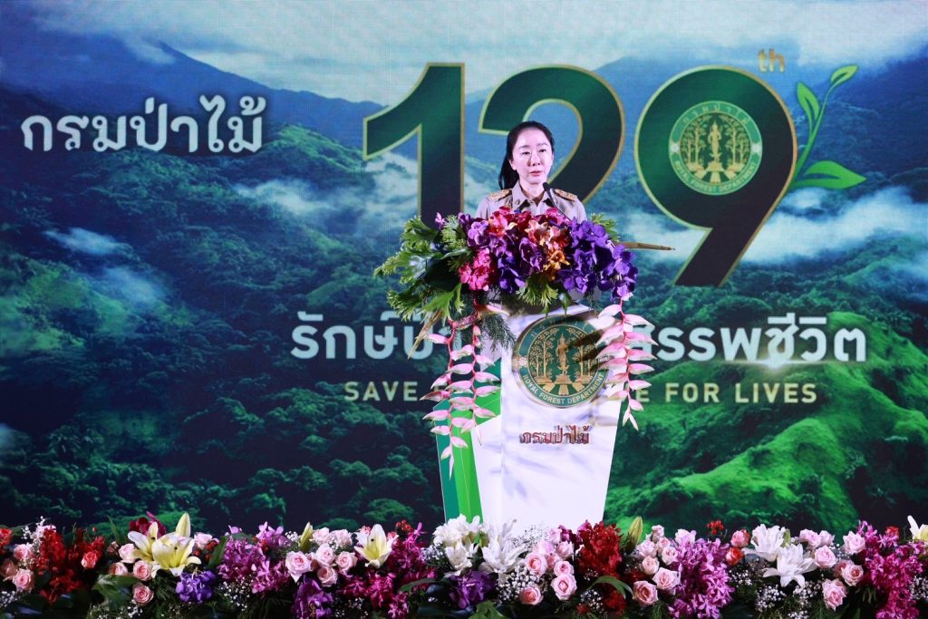 งานวันสถาปนากรมป่าไม้ ครบรอบ 129 ปี ได้รับเกียรติจากดร.ชญานันท์ ภักดีจิตต์ ปลัดกระทรวงทรัพยากรธรรมชาติและสิ่งแวดล้อม (ทส.) เป็นประธานในพิธีพร้อมด้วย ผู้บริหารกระทรวงทรัพยากรธรรมชาติและสิ่งแวดล้อม และผู้บริหารในสังกัด ข้าราชการและเจ้าหน้าที่กรมป่าไม้ เข้าร่วมงานอย่างพร้อมเพรียง เพื่อร่วมกันตอกย้ำความสำคัญในการดูแลและบริหารจัดการทรัพยากรป่าไม้ ควบคู่กับการพัฒนาคุณภาพชีวิตของประชาชนอย่างยั่งยืน