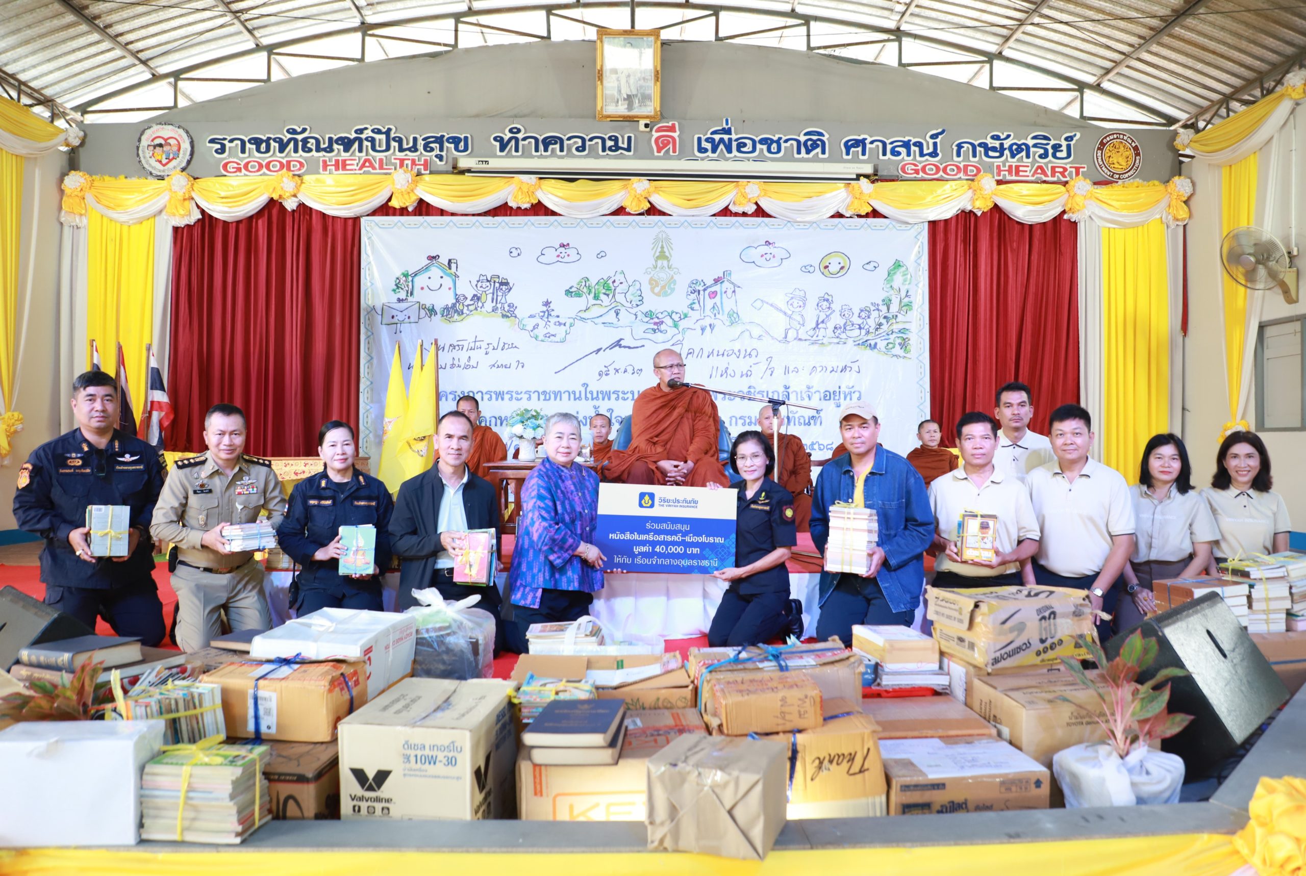 นางสาวจำปา ไขแสง ผู้บัญชาการเรือนจำกลางอุบลราชธานี รับมอบหนังสือในเครือนิตยสารสารคดี-เมืองโบราณ มูลค่า 40,000 บาท และเงินสนับสนุนค่าเดินทางสำหรับผู้ต้องขังที่ได้รับพระราชทานอภัยโทษ มูลค่า 52,000 บาท จาก บริษัท วิริยะประกันภัย จำกัด (มหาชน) โดยมี นางสาวกานดา วัฒนายิ่งสมสุข ที่ปรึกษาฝ่ายสื่อสารองค์กร พร้อมด้วย นายปรินปพัชร์ วิริยะพันธุ์ ที่ปรึกษาฝ่ายส่วนกลางบริหาร เป็นผู้แทนมอบ เพื่อส่งเสริมทักษะการเรียนรู้และสร้างแรงบันดาลใจแก่ผู้ต้องขัง อันเป็นส่วนหนึ่งของกระบวนการเตรียมความพร้อมเพื่อกลับคืนสู่สังคมได้อย่างมีคุณภาพและยั่งยืน โดยมี หลวงตาสินทรัพย์ จรณธัมโม เจ้าอาวาสวัดป่าบ่อน้ำพระอินทร์ ร่วมเป็นประธานพิธีฝ่ายสงฆ์ ณ เรือนจำกลางอุบลราชธานี ต.ในเมือง อ.เมืองฯ จ.อุบลราชธานี