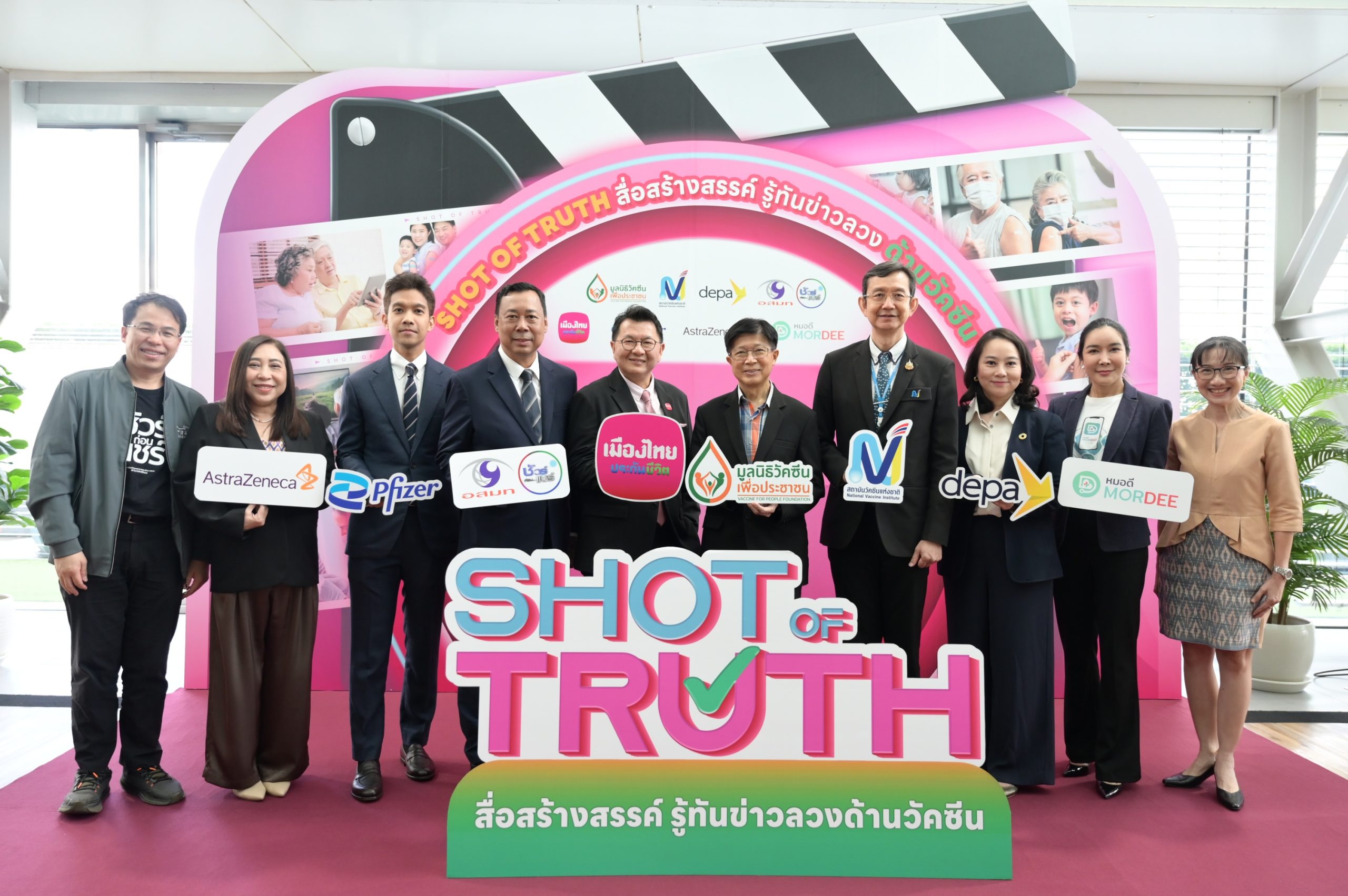 มูลนิธิวัคซีนเพื่อประชาชน ร่วมกับ สถาบันวัคซีนแห่งชาติ ผนึกภาคีเครือข่ายทั้งภาครัฐและเอกชน ได้แก่ สำนักงานส่งเสริมเศรษฐกิจดิจิทัล (depa) ศูนย์ชัวร์ก่อนแชร์ สำนักข่าวไทย อสมท บริษัท เมืองไทยประกันชีวิต จำกัด (มหาชน) บริษัท ไฟเซอร์ (ประเทศไทย) จำกัด บริษัท แอสตร้าเซนเนก้า (ประเทศไทย) จำกัด และ MorDee (หมอดี) แพลตฟอร์มบริการสุขภาพอัจฉริยะ โดย ทรู ดิจิทัล กรุ๊ป เปิดตัวโครงการ “Shot of Truth สื่อสร้างสรรค์ รู้ทันข่าวลวงด้านวัคซีน” ขอเชิญชวนนักเรียน นักศึกษา คนรุ่นใหม่ร่วมประกวดคลิปวิดีโอสั้น เพื่อสร้างความตระหนักถึงการสื่อสารข้อมูลที่ถูกต้องเกี่ยวกับวัคซีนและโรคระบบทางเดินหายใจที่สามารถป้องกันได้ด้วยวัคซีน สร้างภูมิคุ้มกันข่าวลวง ตลอดจนรับมือกับข้อมูลบิดเบือนที่เผยแพร่ผ่านสื่อสังคมออนไลน์ เพื่อให้ประชาชนสามารถเลือกรับวัคซีนได้อย่างเหมาะสม เสริมสร้างระบบสาธารณสุขของประเทศให้เข้มแข็ง