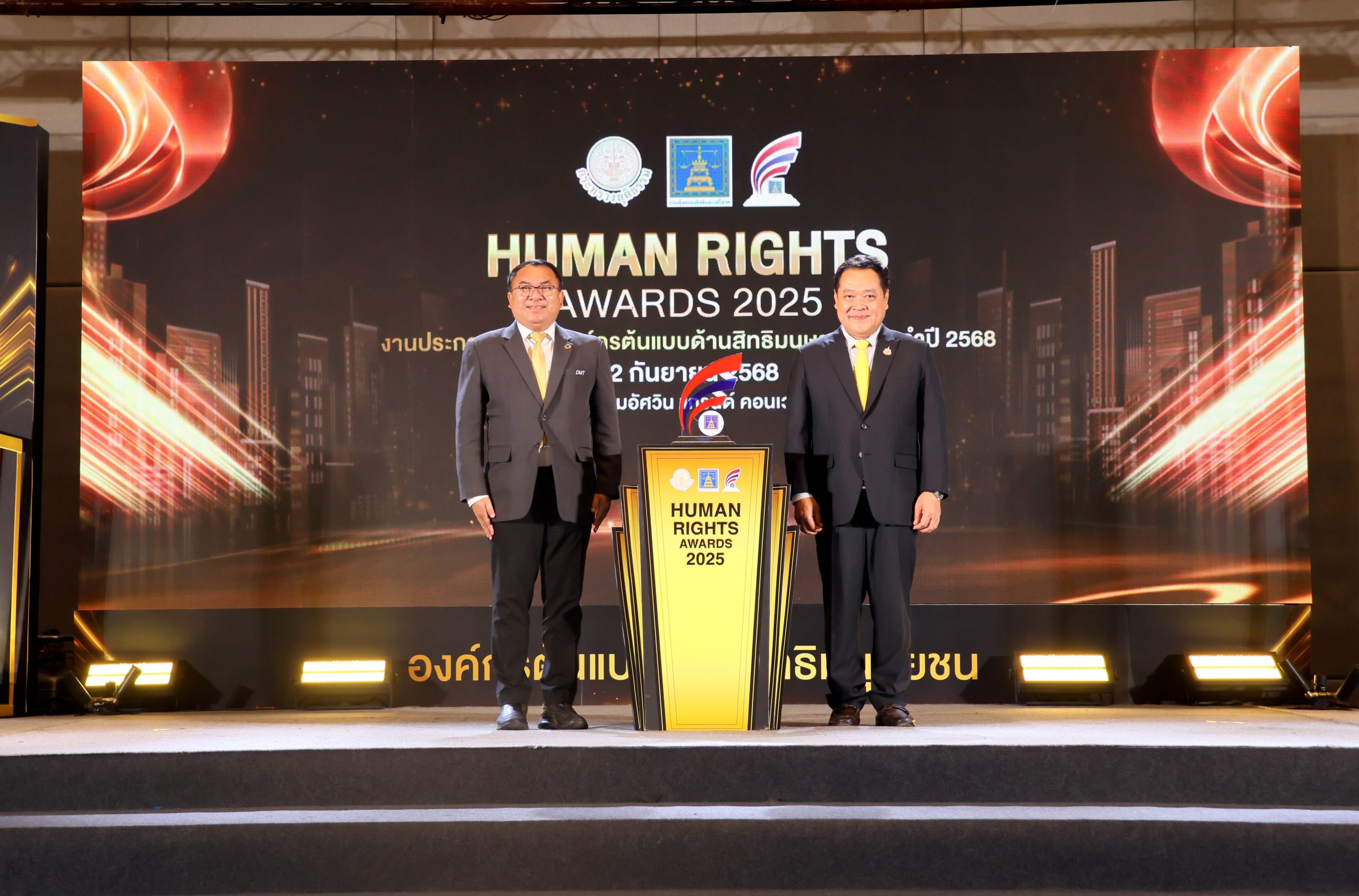 DMTคว้ารางวัล: ดร.ศักดิ์ดา พรรณไวย (ซ้าย) กก.ผจก. บมจ.ทางยกระดับดอนเมือง หรือ DMT เป็นตัวแทนบริษัท เข้ารับรางวัล “องค์กรต้นแบบด้านสิทธิมนุษยชน ประจำปี 2568” ประเภทองค์กรธุรกิจขนาดใหญ่ “ระดับดีเด่น” จาก พ.ต.อ. ทวี สอดส่อง (ขวา) รมว.กระทรวงยุติธรรม โดยปีนี้เป็นปีแรกที่บริษัทได้รับรางวัลระดับดีเด่น ทั้งนี้ DMT มีความมุ่งมั่นและให้ความสำคัญด้านสิทธิมนุษยชน ซึ่งถือได้ว่าเป็นสิทธิขั้นพื้นฐานที่ทุกคนควรได้รับการปฏิบัติอย่างเสมอภาค นับเป็นรางวัลที่สร้างความภาคภูมิใจให้กับพนักงานทุกระดับอย่างแท้จริง ณ รร.อัศวิน แกรนด์ คอนเวนชัน กรุงเทพฯ เมื่อเร็วๆ นี้