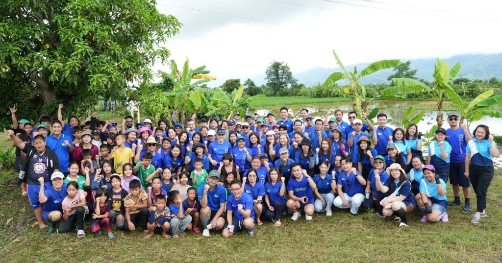บมจ.กรุงไทย-แอกซ่า ประกันชีวิต นำโดย คุณณัฐพิสิษฐ์ ครุฑครองชัย ประธานเจ้าหน้าที่บริหาร (คนที่ 8 จากซ้าย แถวที่สาม) และ คุณบุปผาวดี โอวรารินท์ ประธานเจ้าหน้าที่บริหาร ฝ่ายการตลาด (คนที่ 9 จากซ้าย แถวที่สาม) นำทีมคณะผู้บริหาร พนักงาน และฝ่ายขายจิตอาสา ร่วมเดินหน้าสร้างความยั่งยืนให้กับชุมชน ผ่านกิจกรรมปลูกข้าว พร้อมทั้งมอบอุปกรณ์ไฟแสงสว่างระบบโซลาร์เซลล์และพันธุ์ปลานานาชนิด ภายใต้โครงการ “แผ่นดินทองเพื่อน้องๆ บ้านนานา ปีที่ 18” ณ. มูลนิธิพันธกิจเด็กและชุมชน บ้านนานา อ. แม่สาย จ. เชียงราย ซึ่งเป็นโครงการที่บริษัทฯ จัดทำอย่างต่อเนื่อง และช่วยสร้างรายได้ที่ยั่งยืน โดยสามารถช่วยสร้างผลผลิตข้าวให้แก่ชุมชนเพิ่มขึ้น จาก 2,000 ก.ก. ต่อปี เป็นมากกว่า 7,000 ก.ก. ต่อปี