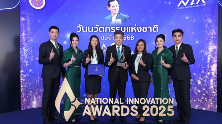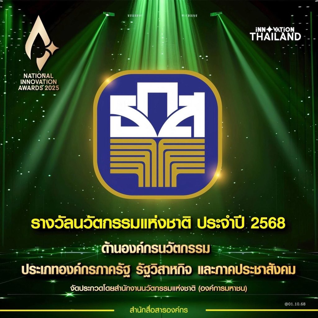 นายฉัตรชัย ศิริไล ผู้จัดการ ธนาคารเพื่อการเกษตรและสหกรณ์การเกษตร (ธ.ก.ส.) พร้อมด้วย นายเสกสรรค์ จันทร์ขวาง รองผู้จัดการ ธ.ก.ส. เข้ารับรางวัลนวัตกรรมแห่งชาติ ประจำปี 2568 ด้านองค์กรนวัตกรรม ประเภทองค์กรภาครัฐ รัฐวิสาหกิจ และภาคประชาสังคม จาก ดร. กริชผกา บุญเฟื่อง ผู้อำนวยการสำนักงานนวัตกรรมแห่งชาติ (องค์การมหาชน) หรือ NIA สังกัดกระทรวงการอุดมศึกษา วิทยาศาสตร์ วิจัยและนวัตกรรม ซึ่งเป็นรางวัลอันทรงเกียรติสูงสุดของวงการนวัตกรรมไทย ที่มอบให้แก่องค์กรที่มีความโดดเด่นด้านการบริหารจัดการนวัตกรรมในองค์กร โดยการใช้ความรู้ เทคโนโลยี และความคิดสร้างสรรค์มาประยุกต์ใช้ เพื่อให้เกิดการสร้างคุณค่าและการเติบโตอย่างยั่งยืนให้แก่องค์กร ตั้งแต่ระดับยุทธศาสตร์ ระดับกระบวนการไปจนถึงระดับโครงสร้างพื้นฐานขององค์กรสะท้อนความมุ่งมั่นของ ธ.ก.ส. ในการเป็นองค์กรนวัตกรรมชั้นนำ ด้วยการนำนวัตกรรมมาเชื่อมการทำงานระหว่างคน เทคโนโลยี เพื่อสร้างผลลัพธ์ให้ธนาคารเติบโตอย่างยั่งยืนผ่านกระบวนการสร้างระบบนิเวศนวัตกรรมองค์กรที่มีประสิทธิภาพ ในทุกระดับ โดยพิธีรับรางวัลดังกล่าวจัดขึ้น ณ ห้องนภาลัย แกรนด์บอลรูม โรงแรมดุสิตธานี กรุงเทพฯ