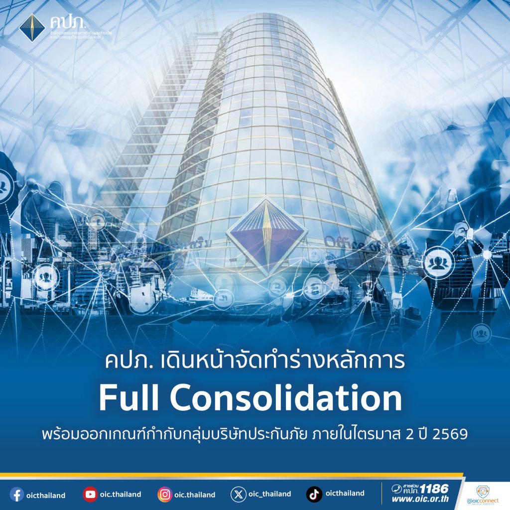 อย่างไรก็ตาม สำนักงาน คปภ. คาดว่าจะสามารถออกหลักเกณฑ์การกำกับดูแลกลุ่มบริษัทประกันภัยในระดับ Full Consolidation ได้ภายในไตรมาส 2 ปี 2569 เพื่อส่งเสริมการเติบโตอย่างยั่งยืนและเพิ่มขีดความสามารถในการแข่งขันของธุรกิจประกันภัยไทย รวมทั้งสอดคล้องกับแนวทางการกำกับดูแล GWS ในระดับสากล