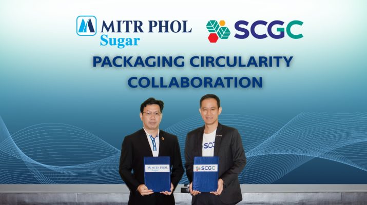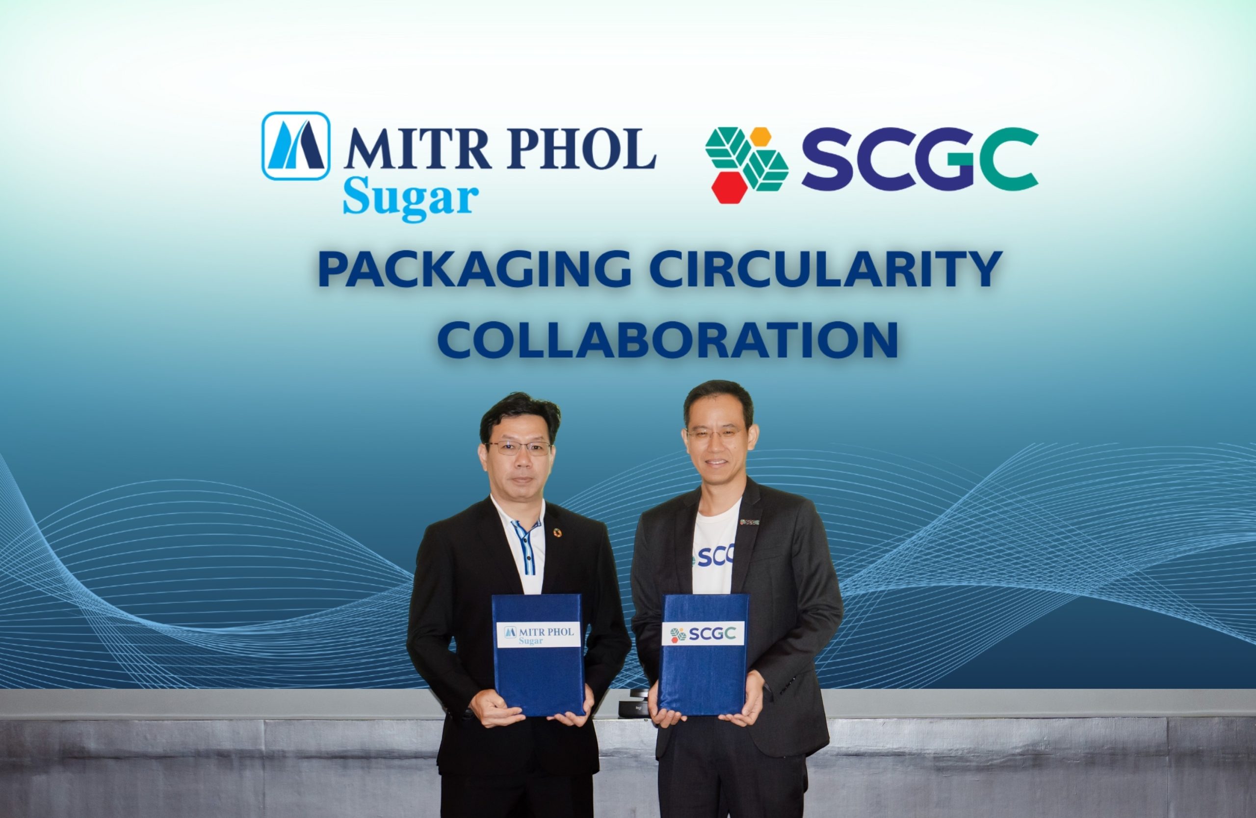 นายผรินทร์ อมาตยกุล รองกรรมการผู้จัดการใหญ่ กลุ่มงานการตลาด บริษัท น้ำตาลมิตรผล จำกัด ผู้นำการผลิตน้ำตาลในภูมิภาคเอเชียแปซิฟิก และ นายชาตรี เอี่ยมโสภณา ประธานเจ้าหน้าที่สายงานพาณิชย์ บริษัท เอสซีจี เคมิคอลส์ จำกัด (มหาชน) หรือ SCGC ผู้นำธุรกิจพอลิเมอร์และโซลูชันครบวงจรเพื่อความยั่งยืน ร่วมลงนามบันทึกความร่วมมือ (MoU) โครงการ “ความร่วมมือบรรจุภัณฑ์หมุนเวียนเพื่อความยั่งยืน (Packaging Circularity Collaboration)” ด้วยนวัตกรรมเม็ดพลาสติกรีไซเคิลคุณภาพสูง (High Quality PCR) จาก SCGC GREEN POLYMER โดยนำพลาสติกใช้แล้วภายในโรงงานอุตสาหกรรมของน้ำตาลมิตรผล กลับมารีไซเคิลและผลิตเป็นฟิล์มสำหรับห่อผลิตภัณฑ์ต่าง ๆ ของกลุ่มมิตรผล อาทิ น้ำตาลมิตรผล เฟรชชี่ ไซรัป รวมทั้งฟิล์มหดรัดสำหรับผลิตภัณฑ์น้ำแร่เอโตะ
