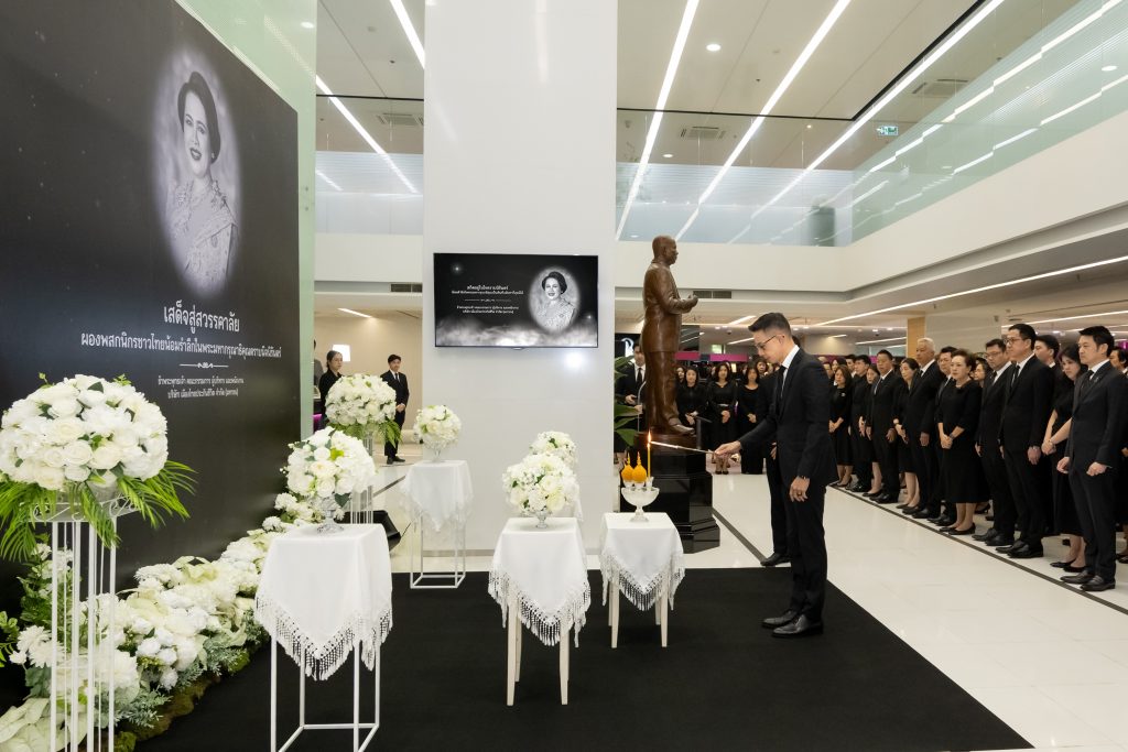 ในโอกาสนี้ นายสาระ ล่ำซำ ประธานเจ้าหน้าที่บริหาร ได้กล่าวถวายความอาลัย พร้อมกันนี้ คณะผู้บริหารและพนักงาน ได้พร้อมใจกันยืนสงบนิ่ง และลงนามในสมุดถวายความอาลัย เพื่อแสดงความจงรักภักดี และน้อมรำลึกถึงพระมหากรุณาธิคุณที่ทรงมีต่อพสกนิกรชาวไทย ตลอดระยะเวลาที่ทรงปฏิบัติ พระราชกรณียกิจน้อยใหญ่นานัปการ ตามที่ทรงตั้งพระราชปณิธานอย่างแน่วแน่ ในการบำเพ็ญ พระราชกรณียกิจมาตลอดพระชนม์ชีพ เพื่อบำบัดทุกข์บำรุงสุข แก่พสกนิกรชาวไทยในทุกหนแห่ง อีกทั้ง ยังทรงส่งเสริมงานด้านศิลปวัฒนธรรม หัตถศิลป์ไทย ตลอดจนการอนุรักษ์ธรรมชาติและสิ่งแวดล้อม รวมทั้งการพัฒนาคุณภาพชีวิตของประชาชนในถิ่นทุรกันดาร ซึ่งสะท้อนถึงพระเมตตาของ สมเด็จพระนางเจ้าสิริกิติ์ พระบรมราชินีนาถ พระบรมราชชนนีพันปีหลวง สมดังพระราชสมัญญา “พระแม่ของแผ่นดิน”