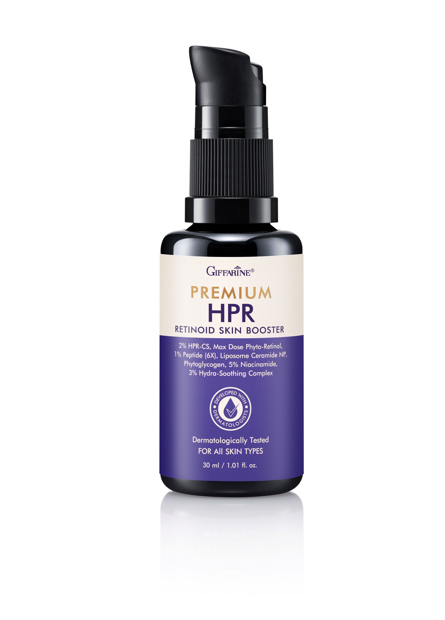 บริษัท กิฟฟารีน สกายไลน์ ยูนิตี้ จำกัด แนะนำไอเท็มเด็ด “กิฟฟารีน พรีเมียม เอชพีอาร์ เรตินอยด์ สกิน บูสเตอร์” (Giffarine Premium HPR Retinoid Skin Booster) ผลิตภัณฑ์ใหม่ในกลุ่มผลิตภัณฑ์บำรุงผิวหน้า (Skin Care For Face) ที่เป็นพรีเมียม เอชพีอาร์ สูตร Effective Dose มีจุดเด่นในเรื่องของความอ่อนโยน แต่ทรงประสิทธิภาพ ด้วยนวัตกรรม Hybrid Retinoids สูตรลับเฉพาะของกิฟฟารีนที่ผสานการทำงานระหว่าง 2% HPR-CS (New Gen-Retinoid Complex Solution) ซึ่งเท่ากับ HPR เข้มข้น 0.2% และ Max Dose Phyto-Retinol เสริมสร้างการผลิตเซลล์ผิวตามธรรมชาติ โดยไม่ทำลายชั้นผิว พร้อมสารเสริมลดการระคายเคือง เช่น Liposome Ceramide NP , 3% Hydra-Soothing Complex ที่รวม Natural Hyaluron 100% & Cica & Natural Betaine & Panthenol ฟื้นบำรุงผิวให้เรียบเนียน ชุ่มชื้น แลดูกระจ่างใส ลดเลือนริ้วรอย ผิวแลดูตึงกระชับ เมื่อใช้ต่อเนื่อง เหมาะสำหรับกลุ่มคนอายุ 25-50 ปีขึ้นไปทั้งผู้หญิง ผู้ชาย กลุ่มคนที่เริ่มมีริ้วรอยหรือกังวลเรื่องริ้วรอยก่อนวัย กลุ่มคนที่ให้ความสำคัญกับการดูแลผิวอีกระดับ และกลุ่มผู้เริ่มต้นหรือมือใหม่หัดใช้เรตินอยด์ เป็นต้น ขนาด 30 มล. ราคา 780 บาท