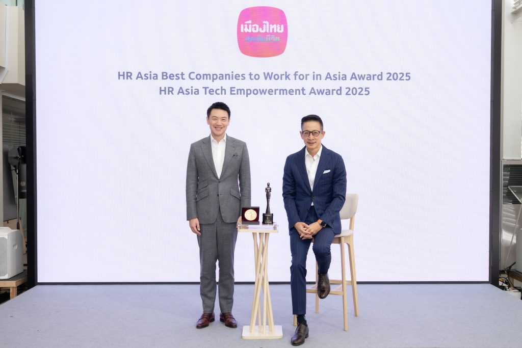 บริษัท เมืองไทยประกันชีวิต จำกัด (มหาชน) คว้า 2 รางวัลใหญ่ระดับสากล ด้านการบริหารทรัพยากรบุคคลและด้านการส่งเสริมการเรียนรู้และการใช้เทคโนโลยีภายในองค์กร ได้แก่ รางวัล “Best Companies to Work For in Asia 2025” ที่ได้รับต่อเนื่องเป็นปีที่ 4 ตอกย้ำความเป็นองค์กรที่น่าทำงานที่สุดในเอเชีย และโดดเด่นด้านการบริหารทรัพยากรบุคคลอันเป็นเลิศ การสร้างสภาพแวดล้อมการทำงานที่เหมาะสม ยอมรับในคุณค่าของพนักงาน เน้นความสุขของพนักงานเป็นสำคัญ และรางวัล “Tech Empowerment” ซึ่งยกย่ององค์กรที่ใช้เทคโนโลยีสนับสนุนการพัฒนาองค์กรและยกระดับประสบการณ์การทำงานของพนักงานอย่างมีประสิทธิภาพ จากนิตยสาร HR Asia ซึ่งเป็นสื่อชั้นนำด้านทรัพยากรบุคคลในภูมิภาคเอเชีย โดยทั้งสองรางวัลสะท้อนให้เห็นถึงความมุ่งมั่นอย่างต่อเนื่องของเมืองไทยประกันชีวิตในการให้ความสำคัญกับการพัฒนาบุคลากร การสร้างสภาพแวดล้อมการทำงานที่มีคุณค่า รวมถึงการนำเทคโนโลยีมาประยุกต์ใช้เพื่อยกระดับการทำงานให้มีประสิทธิภาพมากยิ่งขึ้น