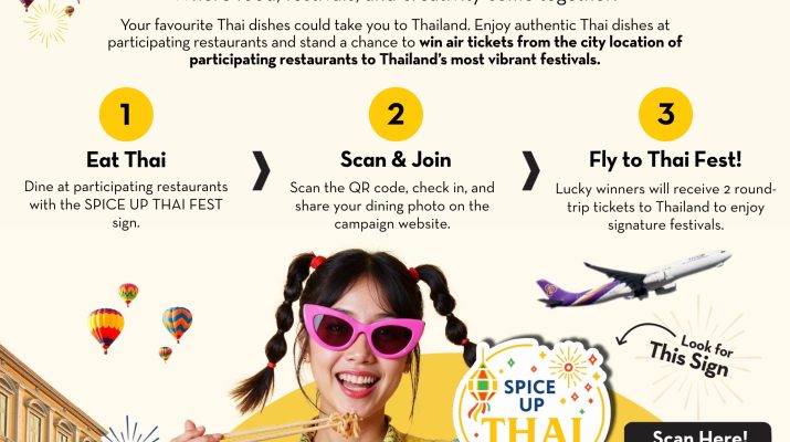 สำหรับแคมเปญ Spice Up Thai Fest ลูกค้าเพียงรับประทานอาหารที่ร้านอาหารไทยในต่างประเทศที่เข้าร่วมโครงการ พร้อมสแกน QR Code ณ ร้านอาหารที่เข้าร่วม เพื่อเข้าสู่แพลตฟอร์มออนไลน์ www.SpiceUpThaiFest.tceb.or.th และร่วมกิจกรรมโดยถ่ายภาพพร้อมบรรยายความรู้สึกกับอาหารไทยและอัตลักษณ์ความเป็นไทย และเช็คอินบนแพลตฟอร์ม ก็มีโอกาสได้รับตั๋วเครื่องบินไป-กลับจากสายการบินไทย รวมกว่า 55 รางวัล เพื่อมาร่วมสัมผัสประสบการณ์งานเฟสติวัลไทยในประเทศไทย โดยสามารถร่วมกิจกรรมได้ตั้งแต่วันที่ 15 พฤศจิกายน 2568 – 18 มกราคม 2569 พร้อมประกาศผู้ได้รับรางวัลบนแพลตฟอร์มในวันที่ 22 มกราคม 2569 สามารถติดตามรายละเอียดแคมเปญได้ที่ www.SpiceUpThaiFest.tceb.or.th