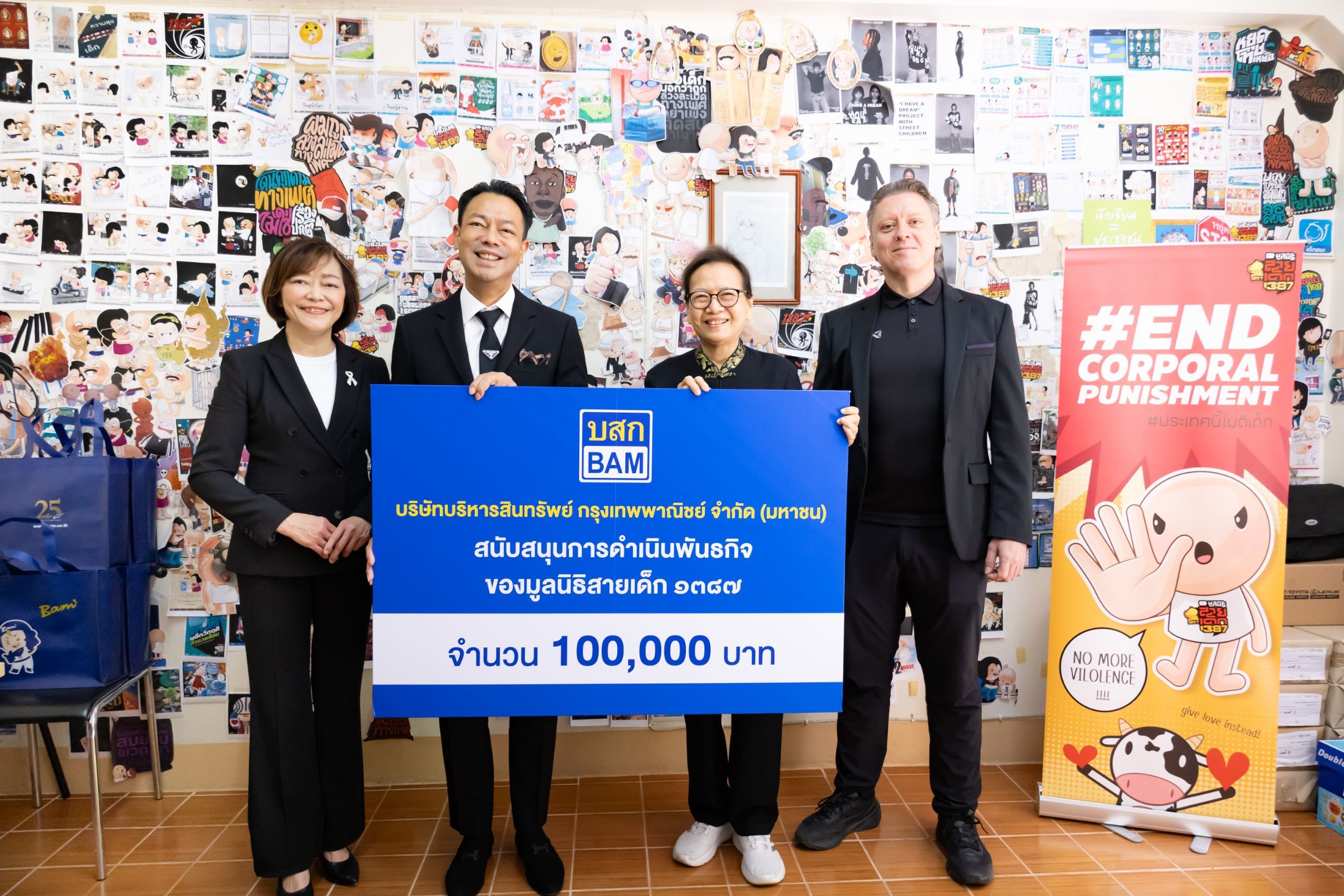ดร.รักษ์ วรกิจโภคาทร ประธานเจ้าหน้าที่บริหาร บริษัทบริหารสินทรัพย์ กรุงเทพพาณิชย์ จำกัด (มหาชน) หรือ BAM มอบเงินสนับสนุนพันธกิจ มูลนิธิสายเด็ก 1387 จำนวน 100,000 บาท โดยมี ดร.ธาริษา วัฒนเกส ประธานมูลนิธิฯ และคุณอิลยา สมิร์นอฟ ผู้อำนวยการมูลนิธิฯ เป็นผู้รับมอบ ณ สำนักงานมูลนิธิสายเด็ก