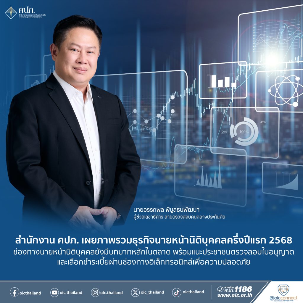 สำนักงานคณะกรรมการกำกับและส่งเสริมการประกอบธุรกิจประกันภัย (สำนักงาน คปภ.) เปิดเผยสถิติธุรกิจนายหน้านิติบุคคลครึ่งปีแรก (มกราคม–มิถุนายน 2568) โดยมีนายหน้านิติบุคคลที่ใบอนุญาตยังมีผลบังคับรวมทั้งสิ้น 750 บริษัท แบ่งเป็น นายหน้าประกันชีวิต 118 บริษัท นายหน้าประกันวินาศภัย 500 บริษัท และนายหน้าที่ได้รับใบอนุญาตทั้งสองประเภท 132 บริษัท โดยในช่วงครึ่งปีแรก มีนายหน้านิติบุคคล รายใหม่ 11 บริษัท ขณะที่มีนายหน้าที่สิ้นสุดใบอนุญาตและยกเลิกใบอนุญาต รวม 21 บริษัท ส่งผลให้จำนวนรวมของนายหน้านิติบุคคล ลดลงเล็กน้อยเมื่อเทียบกับช่วงเดียวกันของปีก่อน