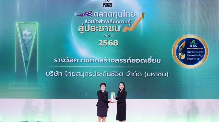 OCEAN LIFE ไทยสมุทรประกันชีวิต โดย คุณสุวรรณ อุดมเฉลิมเดช Deputy Chief Executive Officer and Acting Chief Investment Officer (CIO) รับรางวัล “ความคิดสร้างสรรค์ยอดเยี่ยม” (Creativity Award) จาก สำนักงานคณะกรรมการกำกับหลักทรัพย์และตลาดหลักทรัพย์ (สำนักงาน ก.ล.ต.) ในโครงการ “ตลาดทุนไทยร่วมใจส่งพลังความรู้ สู่ประชาชน เฟส 2 ปี 2568 ซึ่งเป็นรางวัลสำหรับผู้ประกอบธุรกิจที่มีการให้ความรู้การเงินการลงทุนที่สามารถทำให้คนจดจำได้ง่าย นำไปสู่การช่วยให้เกิดการปรับเปลี่ยนพฤติกรรมของกลุ่มเป้าหมาย และ/หรือ มีการประยุกต์ใช้เทคโนโลยีมาประกอบการให้ความรู้ได้อย่างสร้างสรรค์ ซึ่งสามารถนำไปปฏิบัติให้เกิดผลต่อกลุ่มเป้าหมายอย่างเป็นรูปธรรม