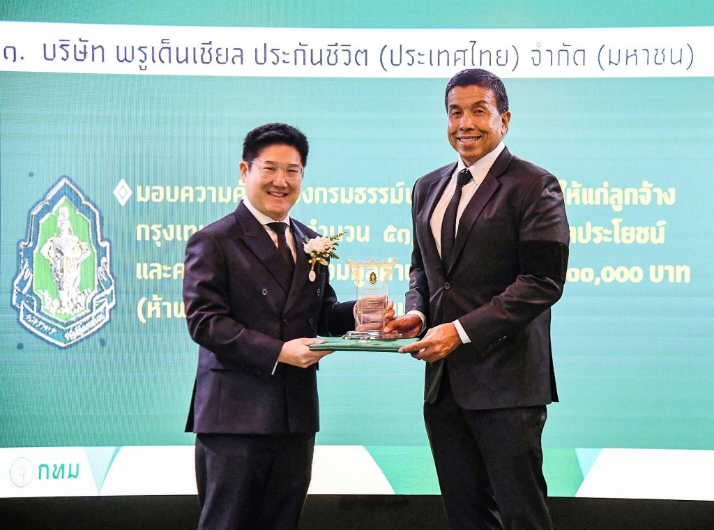 สำหรับการรับมอบประกาศเกียรติคุณ โล่รางวัล และเข็มเชิดชูเกียรติ ครั้งนี้ ถือเป็นเครื่องหมายที่แสดงถึงความมุ่งมั่นของพรูเด็นเชียลฯ ในการดำเนินธุรกิจควบคู่กับการสร้างคุณค่าแก่สังคมผ่านโครงการ “Give The Future: การให้ที่ยั่งยืน คือ การให้ที่ส่งต่อได้” ด้วยการมอบกรมธรรม์ประกันภัยอุบัติเหตุแก่ลูกจ้างกทม.และลูกจ้างโรงพยาบาลรัฐ จำนวน 80,000 คน ทุนประกันภัยรวม 8,000,000,000 บาท เพื่อส่งเสริมโอกาสและมอบความคุ้มครองด้านประกันชีวิตแก่กลุ่มคนเปราะบาง ซึ่งพรูเด็นเชียลฯ เชื่อว่าการดำเนินธุรกิจที่ดี ไม่ได้เพียงแค่ต้องมีส่วนร่วมในการสร้างสังคมที่ดี แต่ต้องมุ่งสร้าง “การเปลี่ยนแปลงเชิงบวกให้กับสังคม” อีกด้วย