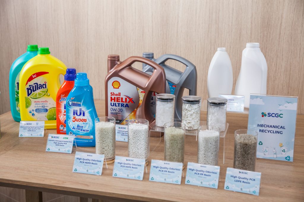 “ทั้งนี้ SCGC พร้อมนำองค์ความรู้และความเชี่ยวชาญด้านต่าง ๆ อาทิ กระบวนการวิจัยและพัฒนานวัตกรรมระดับสากล เทคโนโลยีรีไซเคิล การเพิ่มประสิทธิภาพด้วยการประยุกต์ใช้เทคโนโลยีสมัยใหม่และเครื่องจักรขั้นสูง รวมถึงปัญญาประดิษฐ์ (AI) การพัฒนาทักษะบุคลากรและหนุนผู้ประกอบการไทยให้ปรับตัวสู่แนวอุตสาหกรรมยุคใหม่ที่รับผิดชอบต่อสิ่งแวดล้อม เช่น การคำนวณและลดคาร์บอนฟุตพริ้นท์ การเพิ่มประสิทธิภาพการใช้พลังงาน การขยายการใช้เม็ดพลาสติกรีไซเคิล รวมทั้งการสนับสนุนการพัฒนานวัตกรรมด้านสังคม เช่น อุปกรณ์ป้องกันน้ำท่วมสำหรับใช้ใกล้บริเวณแหล่งกำเนิดน้ำ ทุ่นลอยน้ำสำหรับกักขยะไม่ให้ไหลสู่ทะเล เป็นต้น” นายศักดิ์ชัยกล่าวทิ้งท้าย