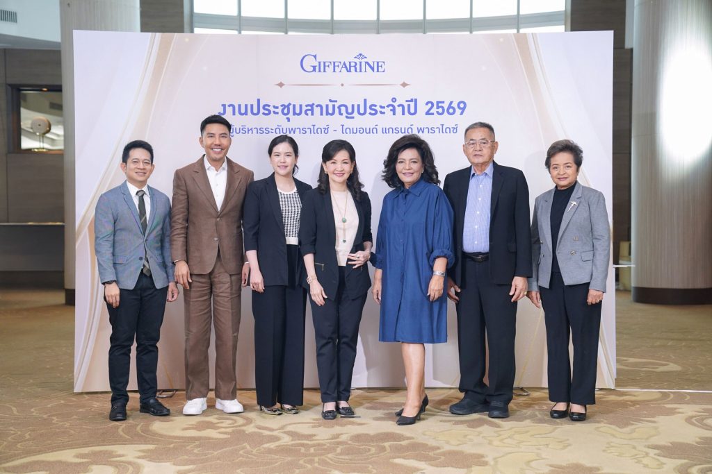 บริษัท กิฟฟารีน สกายไลน์ ยูนิตี้ จำกัด จัดงานประชุมสามัญประจำปี 2569 แถลงนโยบายและกลยุทธ์ทางการตลาด เปิดรับศักราชใหม่ ด้วยนโยบายที่ผสมผสานการตลาดเชิงรุกรอบด้าน เน้นกลยุทธ์การสร้างประสบการณ์ให้ลูกค้าเข้าถึงนวัตกรรมผลิตภัณฑ์ในทุกช่องทาง เปิดตัวเครื่องมือทางการตลาดใหม่ๆ สนับสนุนนักธุรกิจเติบโตอย่างรวดเร็ว นำโดย พญ.นลินี ไพบูลย์ ประธานกรรมการ คุณพงศ์พสุ อุณาพรหม รองกรรมการผู้จัดการ และประธานเจ้าหน้าที่เพื่อการเติบโตองค์กร คุณเอกกมล บุญญาภิสันท์ ผู้อำนวยการสายงานการตลาด และผู้ช่วยผู้บริหารเพื่อการเติบโตองค์กร พญ.สิริอรญ์ สุกาญจนพงษ์ ผู้จัดการฝ่ายนวัตกรรมผลิตภัณฑ์ คุณศุภร ธัญวาส ผู้บริหารระดับไดมอนด์ แกรนด์ พาราไดซ์ และผู้บริหารระดับสูง เข้าร่วมงานซึ่งงานในครั้งนี้มีนักธุรกิจกิฟฟารีนจากทั่วประเทศ ร่วมงานประชุมกว่า 1,000 คน ณ โรงแรม มิราเคิล แกรนด์ คอนเวนชั่น เมื่อวันอาทิตย์ที่ 25 มกราคม 2569 ที่ผ่านมา
