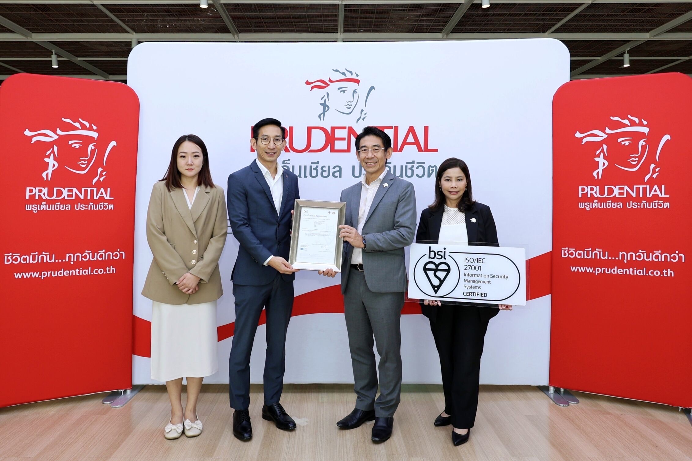 ผ่านการรับรองมาตรฐาน :นายบัณฑิต เจียมอนุกูลกิจ ประธานเจ้าหน้าที่บริหาร พรูเด็นเชียล ประเทศไทย รับมอบใบรับรองมาตรฐานระดับนานาชาติ ISO/IEC 27001:2022 เวอร์ชันล่าสุด จาก นายกุลธัช บุญบงการ Country Manager บริษัท บีเอสไอ กรุ๊ป (ประเทศไทย) จำกัด (BSI) สถาบันรับรองมาตรฐานแห่งชาติของประเทศอังกฤษ (The British Standards Institution) ณ สำนักงานใหญ่ พรูเด็นเชียล ประเทศไทย อาคารมิตรทาวน์ ออฟฟิศ ทาวเวอร์ ชั้น 30 ถนนพระราม 4 เร็วๆนี้