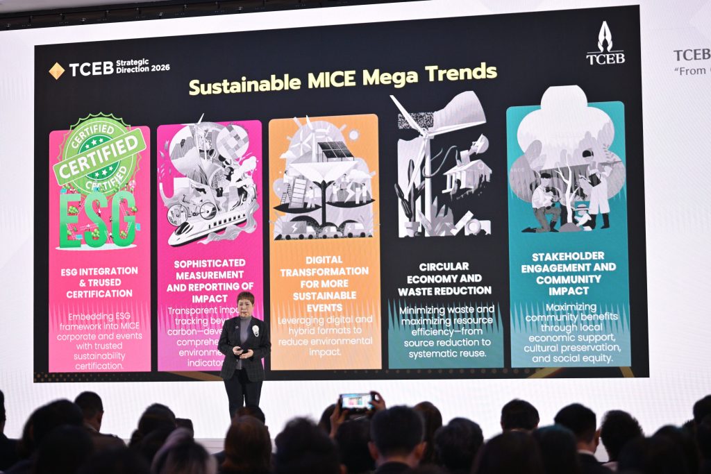 ดร. ศุภวรรณ ตีระรัตน์ ผู้อำนวยการสำนักงานส่งเสริมการจัดประชุมและนิทรรศการ (องค์การมหาชน) หรือ ทีเส็บ กล่าวถึงทิศทางการดำเนินงานปี 2569 ว่า ทีเส็บได้กำหนดวิสัยทัศน์ให้ประเทศไทยก้าวสู่การเป็นผู้นำไมซ์ระดับโลกบนรากฐานที่แข็งแรงในฐานะ “Global-Asia’s Trusted Gateway” หรือ “ประตูสู่เอเชียที่ทั่วโลกให้ความไว้วางใจ” โดยมุ่งให้อุตสาหกรรมไมซ์ไทยสร้างผลกระทบระดับสูง (High-Impact) ต่อเศรษฐกิจและอุตสาหกรรมที่จัดงาน พร้อมส่งมอบประสบการณ์ที่ทรงคุณค่าและยั่งยืน (Transformative, High-Value, Sustainable Experiences)