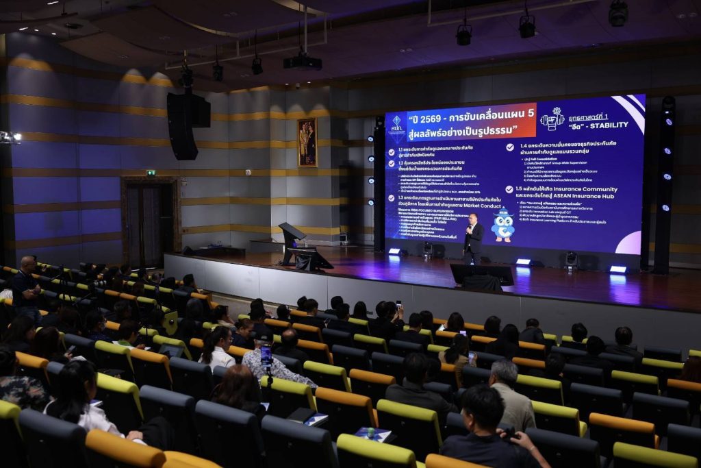 ประเด็นที่ 5 ผลักดันให้เกิด Insurance Community และยกระดับไทยสู่ ASEAN Insurance Hub โดยสร้าง Insurance Community เพื่อเชื่อมโยง “คน ความรู้ นวัตกรรม และความร่วมมือ” ระหว่างภาคธุรกิจ ภาควิชาการ และ ภาคเทคโนโลยีอย่างเป็นระบบ โดยขยายความร่วมมือกับสถาบันการศึกษา พัฒนา Innovation Center และส่งเสริม InsurTech ควบคู่กับการพัฒนาหลักสูตรวิชาชีพและจัดทำ Insurance Learning Platform เพื่อสร้างโครงสร้างพื้นฐานด้านองค์ความรู้ ของอุตสาหกรรม อันจะช่วยยกระดับศักยภาพบุคลากร ส่งเสริมนวัตกรรม และวางรากฐานให้ประเทศไทยก้าวสู่การเป็นศูนย์กลาง ด้านประกันภัยของภูมิภาค (ASEAN Insurance Hub) ในระยะยาว