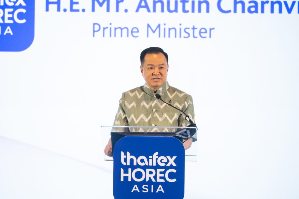 นายกรัฐมนตรี กล่าวว่า “งานแสดงสินค้า THAIFEX – HOREC ASIA เป็นเวทีการค้าระดับนานาชาติที่เปิดโอกาสให้ผู้ประกอบการ นักลงทุน และผู้ซื้อจากทั่วโลกได้เชื่อมโยงเครือข่าย แลกเปลี่ยนองค์ความรู้ และต่อยอดสู่โอกาสทางธุรกิจที่เป็นรูปธรรม ตลอดจนร่วมกันกำหนดทิศทางอนาคตของอุตสาหกรรม HoReCa” พร้อมระบุว่าการจัดงานครั้งนี้ยิ่งใหญ่กว่าทุกครั้งที่ผ่านมา รวบรวมสินค้า บริการ และนวัตกรรมอย่างครอบคลุมครบวงจร ตอบโจทย์ผู้ประกอบการทุกระดับ โดยมีผู้แสดงสินค้าชั้นนำเกือบ 700 บริษัท จาก 35 ประเทศ (รวมประเทศไทย)