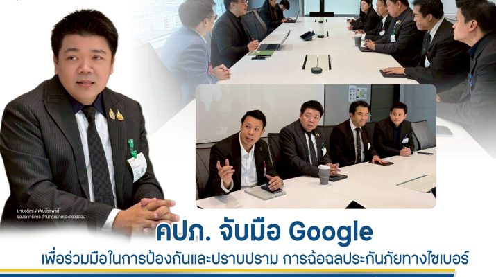 สำนักงานคณะกรรมการกำกับและส่งเสริมการประกอบธุรกิจประกันภัย (สำนักงาน คปภ.) เข้าพบผู้แทน Google เพื่อประชุมหารือแนวทางการประสานความร่วมมือในการป้องกันความเสี่ยงและผลกระทบต่อประชาชน จากการใช้บริการผลิตภัณฑ์ประกันภัยโดยผู้ที่มีเจตนาหลอกลวงประชาชน โดยมี นายอดิศร พิพัฒน์วรพงศ์ รองเลขาธิการ ด้านกฎหมายและตรวจสอบ พร้อมด้วย นายจอม จีระแพทย์ ผู้ช่วยเลขาธิการ สายกฎหมายและคดี และคณะผู้แทนเข้าร่วมประชุมหารือ ณ Google Thailand อาคารปาร์คเวนเชอร์ อีโคเพล็กซ์ถนนวิทยุ กรุงเทพมหานคร