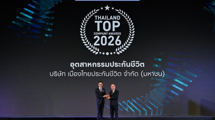 บริษัท เมืองไทยประกันชีวิต จำกัด (มหาชน) ตอกย้ำความเป็นผู้นำในอุตสาหกรรมประกันชีวิตของไทย ด้วยการคว้ารางวัลสุดยอดองค์กรธุรกิจไทย THAILAND TOP COMPANY AWARDS 2026 ประเภท อุตสาหกรรมประกันชีวิต ต่อเนื่องเป็นปีที่ 8 นับตั้งแต่ปี 2019–2026 สะท้อนถึงความแข็งแกร่งในการดำเนินธุรกิจความน่าเชื่อถือขององค์กร และการเติบโตอย่างมั่นคงท่ามกลางความเปลี่ยนแปลงของโลกธุรกิจ